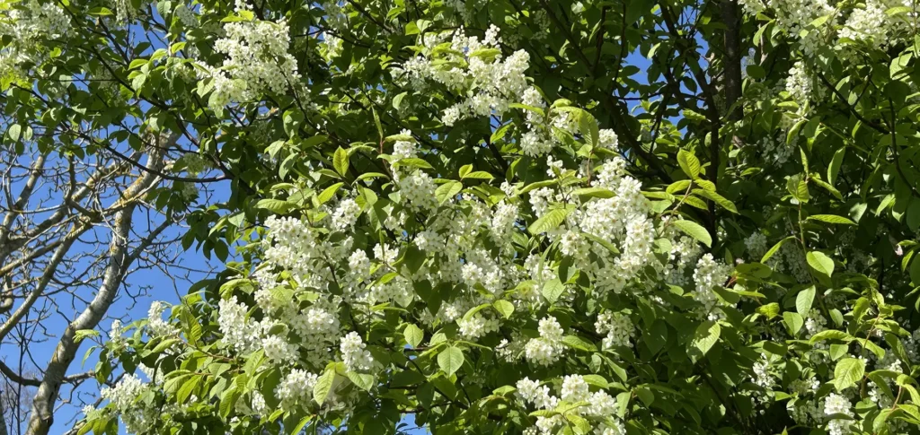 Prunus padus Almindelig hæg Kaldes også Maj-træ. Voksede her allerede da vi flyttede ind. Spreder sig gerne, og slå nemt rod nye steder i haven. April 2024 Maj 2024 April 2025 Formering Stiklinger. Planterige Rosenfamilien // Rosenordenen // Tokimbladede Voksested mv April // Elmehjørnet // Hvid // Maj // September // Skovstien // Sletten April 2025 April 2025 Maj 2024 Maj 2025 Maj 2025 Juli 2024 Mere om almindelig hæg mst.dk naturbasen.dk