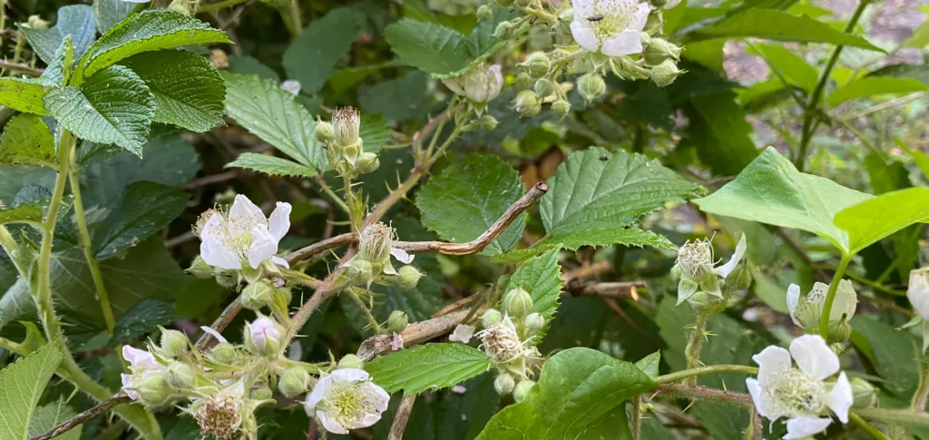 Var her før vi overtog. Brombærkrat fjernet 2022/2023, stadig mange småskud rundtomkring.