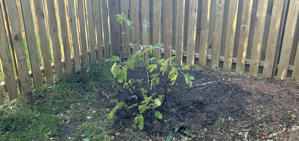 2025: Har igen sat frugt. September: Flyttet til gårdhaven.