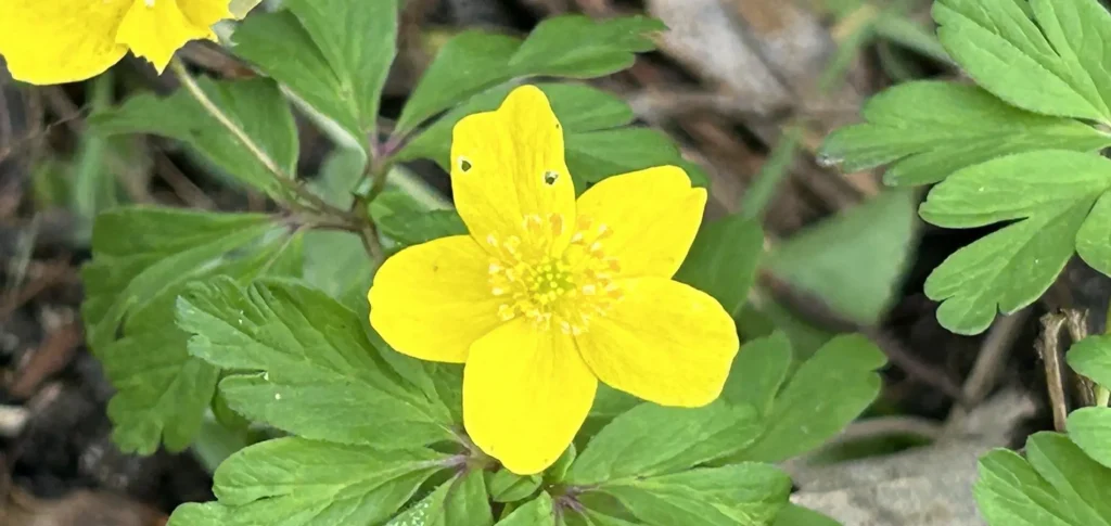 Anemone ranunculoides Gul anemone 2025: Fundet ved Audebo-dæmningen. Plantet ved mellem træerne ved indgangen til skovstien. April 2025 April 2025 April 2025 Formering Frø. Planterige Ranunkelfamilien // Ranunkelordenen // Tokimbladede Voksested mv April // Gul // Skovstien Mere om gul anemone Naturbasen