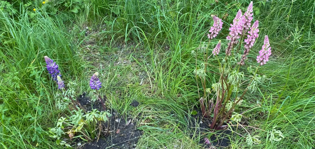 2025: En af planterne fra sidste år spirer igen. Tre stk Staudelupiner købt på Gartnergården. Udplantet medio april i forhaven. Hhv. Gallery White, Gallery Pink og Gallery Blue. Frø sået i slangen på engen. Også medio april. Flere frø (fra Under Himlen vejbod) forspiret med succes på altanen.