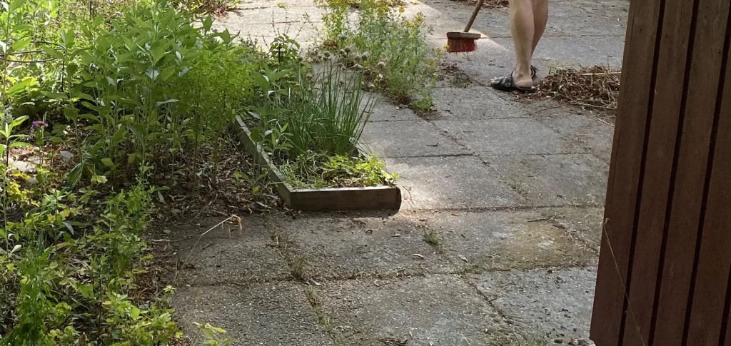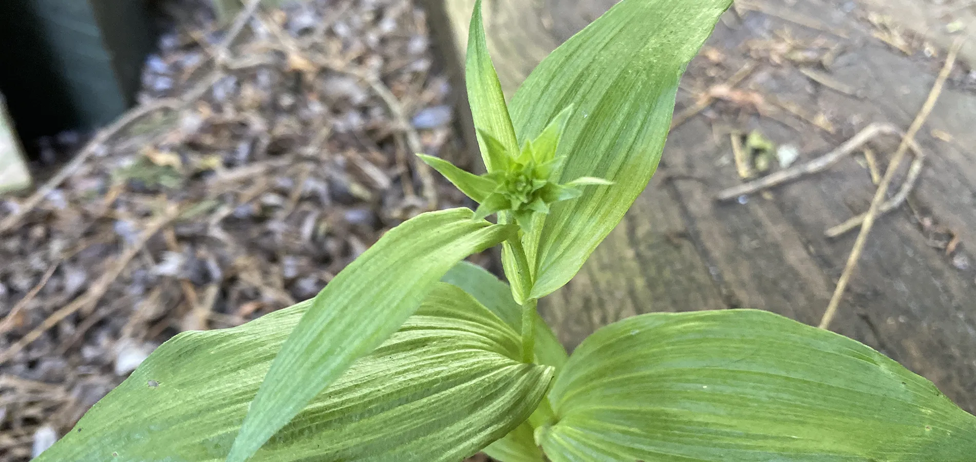 2023: Set første gang mellem træsvellerne ved siden af carporten. Selvsået.